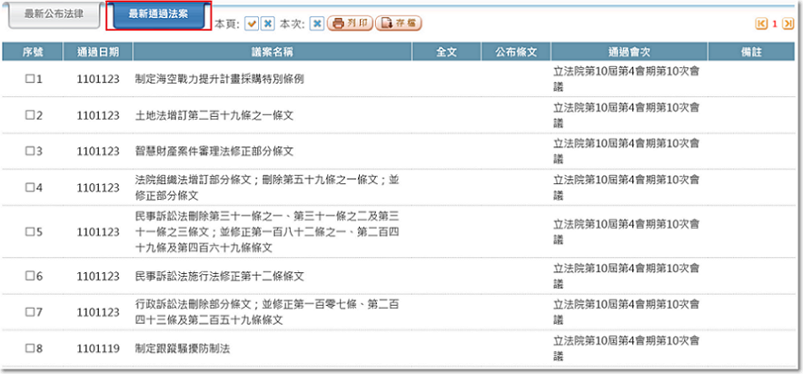顯示最近一會期通過法案。