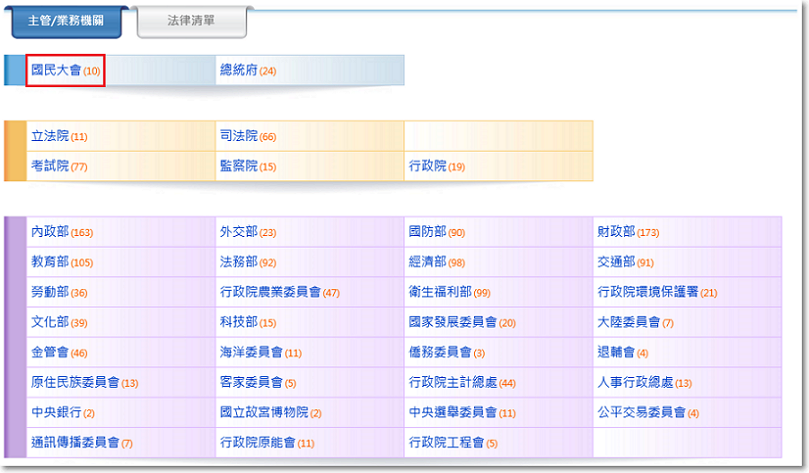 點選機關名稱顯示屬於其機關的法律清單。