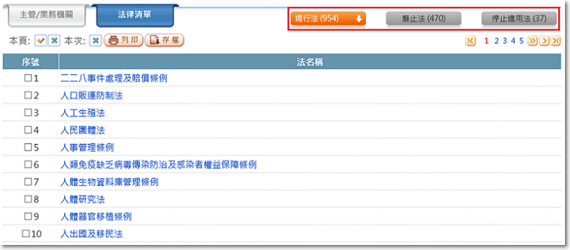 法律清單瀏覽