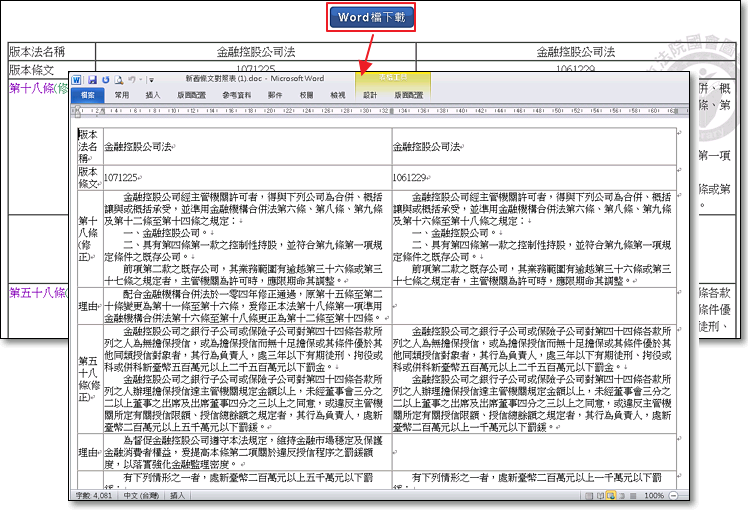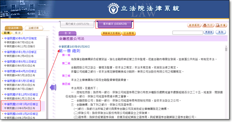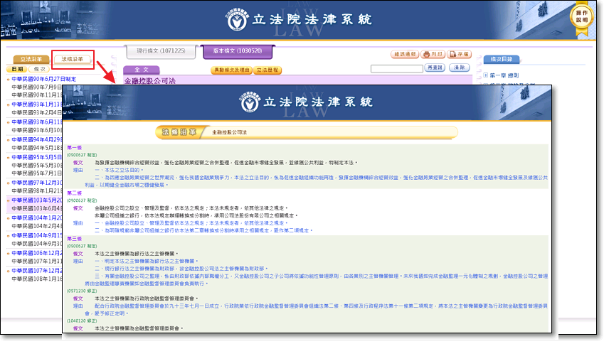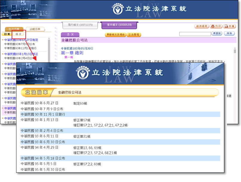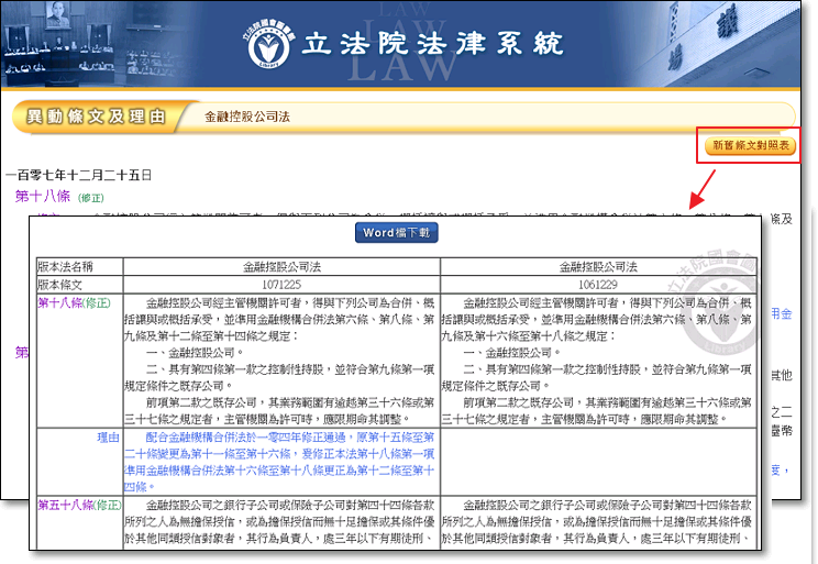★ 以下版本無「新舊條文對照表」功能鍵: