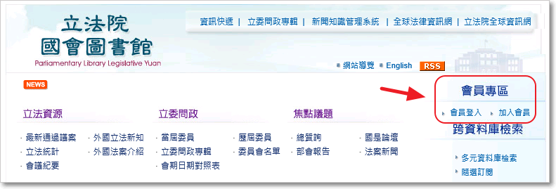 使用者可以先登入國會圖書館網站再連線進入本系統。